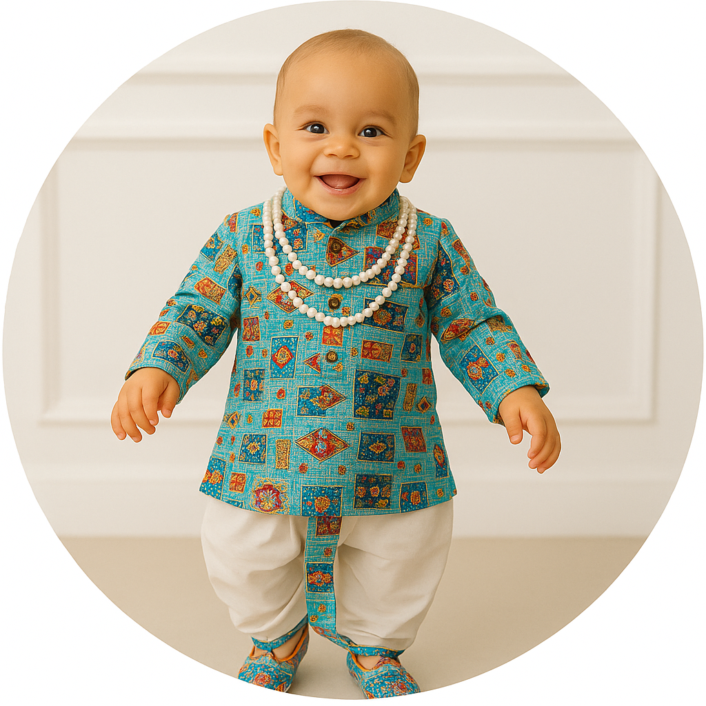 More sizes availablePremium Heritage Maharaja Set – Dhoti & PantVendor: Mommies KidsTransform your little one into a trendsetter with our Boys' Indo-Western outfit designed for infants. This charming ensemble effortlessly blends traditional Indian aesthetics with contemporary Western flair, creating a perfect fusion of style and comfort. Specifications: Type:Soft lining included (Kurta ), (Dhoti & Pant Elastic...