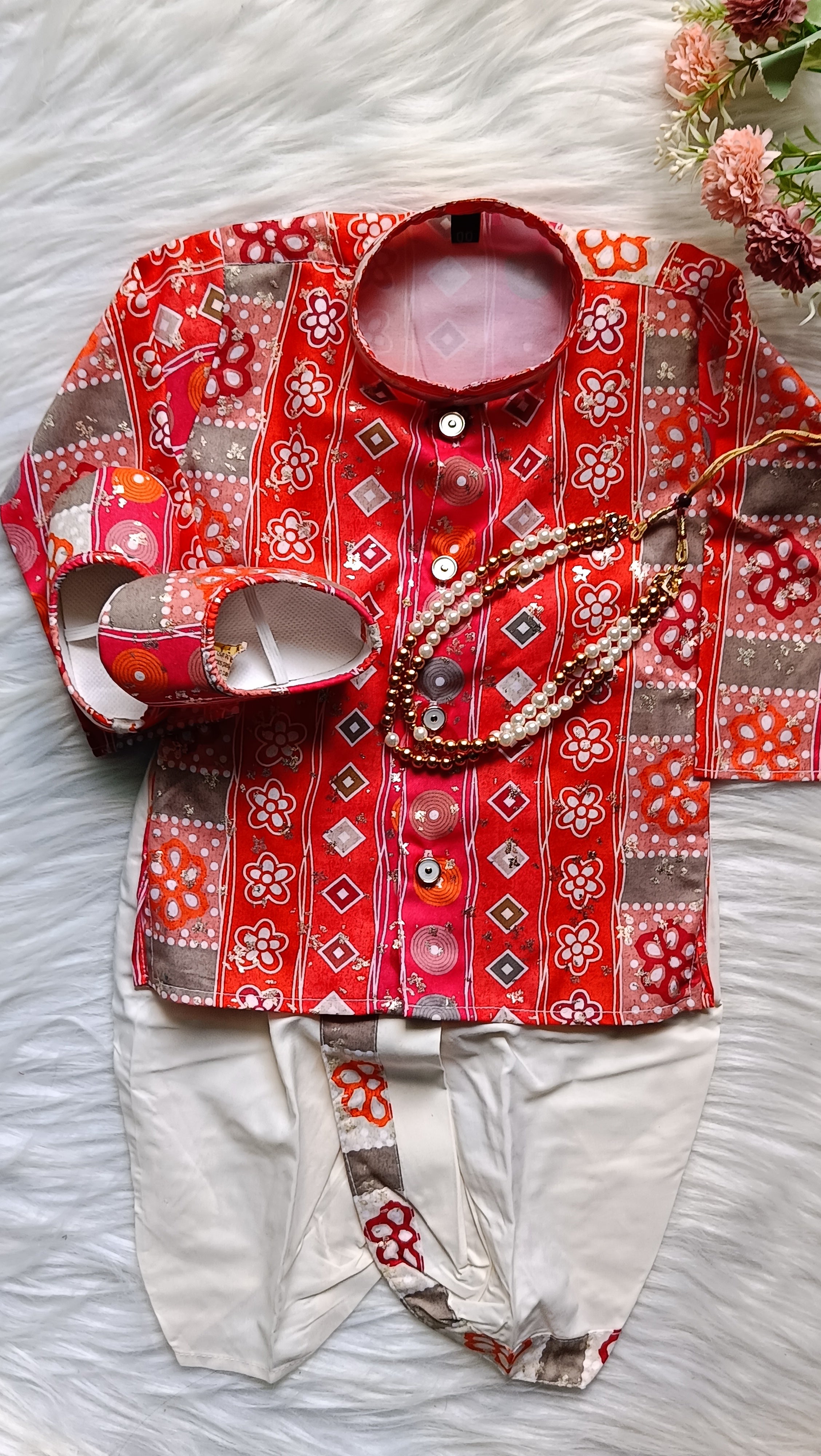 Boys Milano Red Dhoti set - Chain and Shoes Included