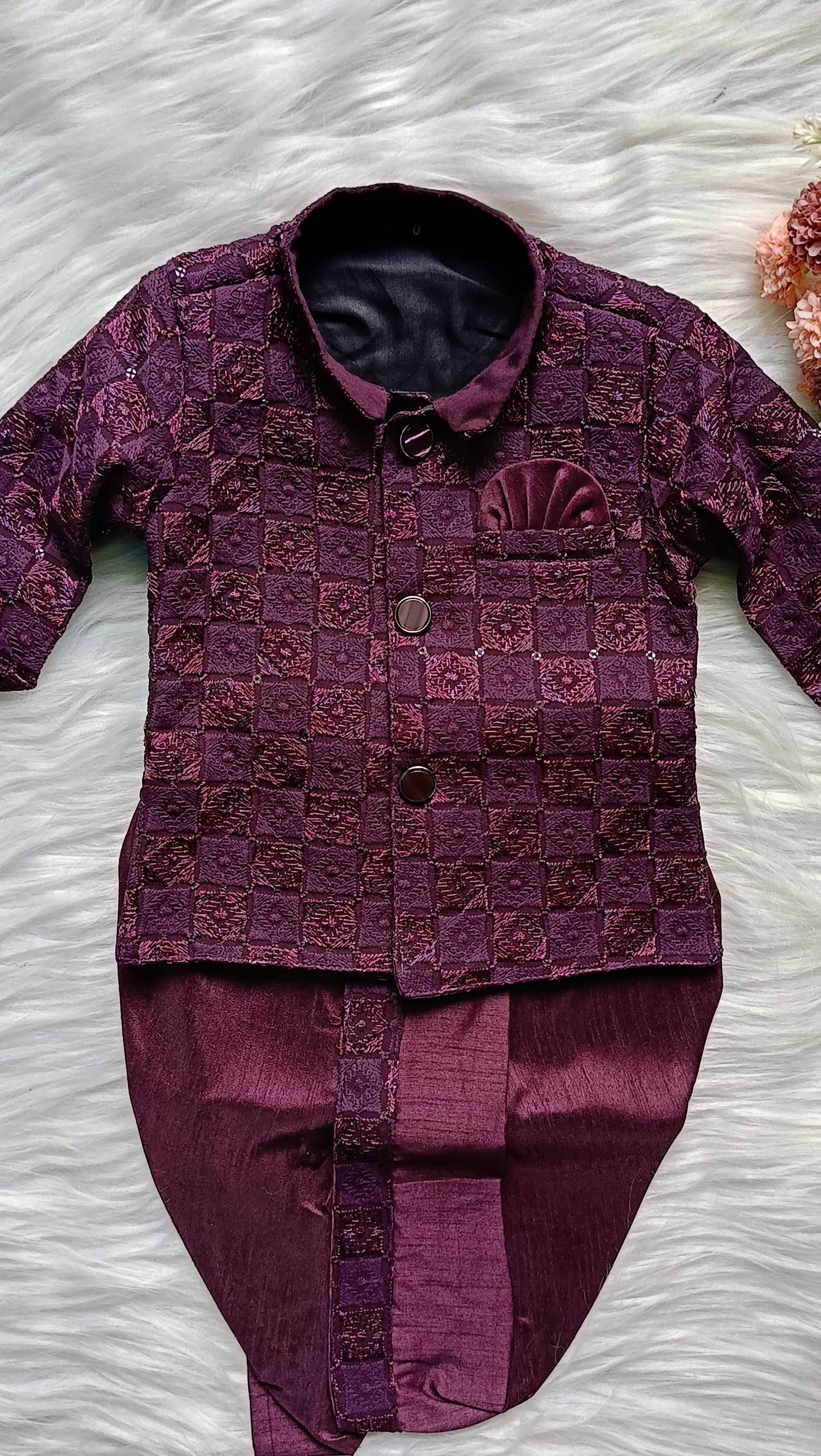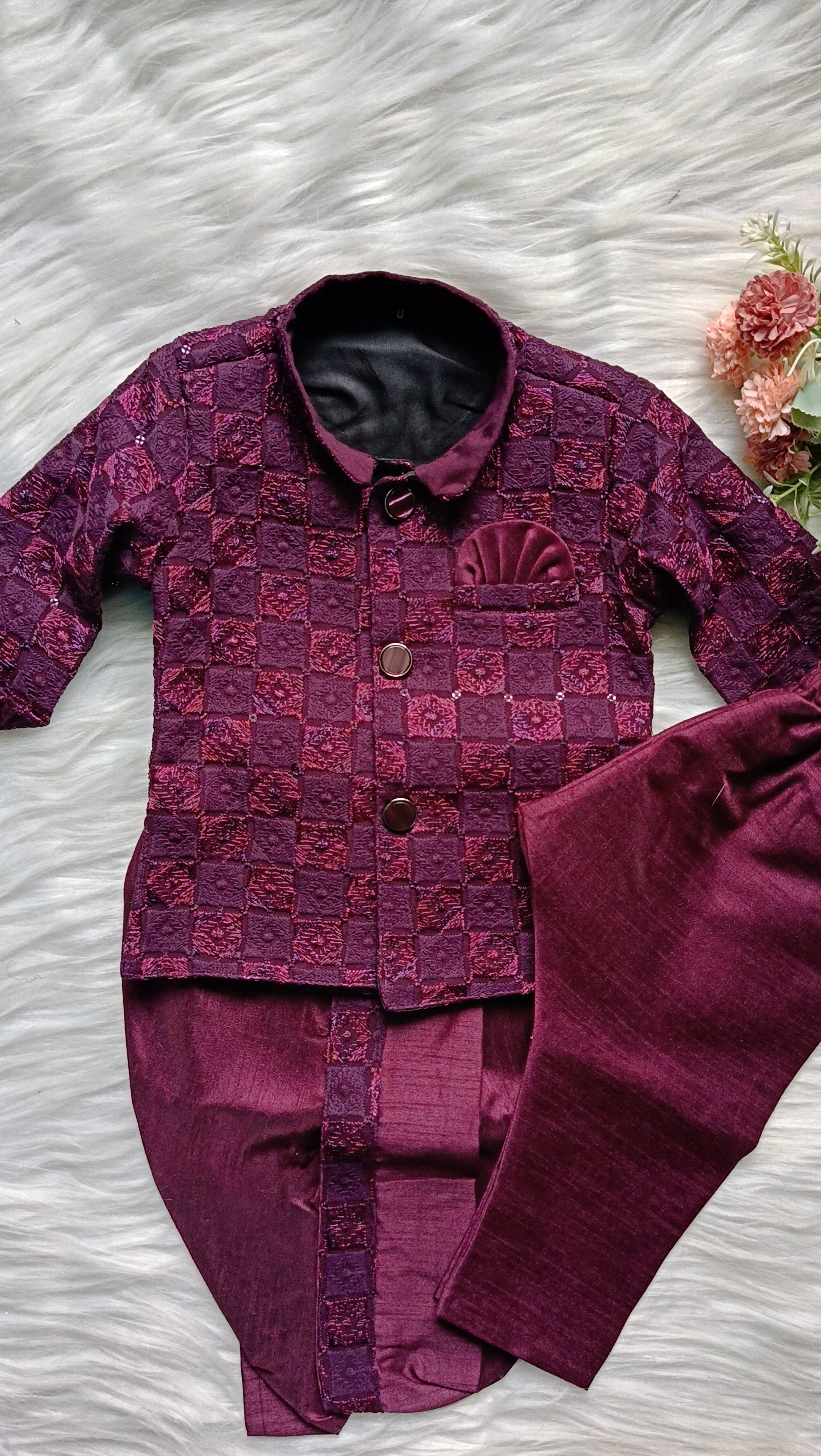 Transform your little one into a trendsetter with our Boys' Indo-Western outfit designed for infants. This charming ensemble effortlessly blends traditional Indian aesthetics with contemporary Western flair, creating a perfect fusion of style and comfort.