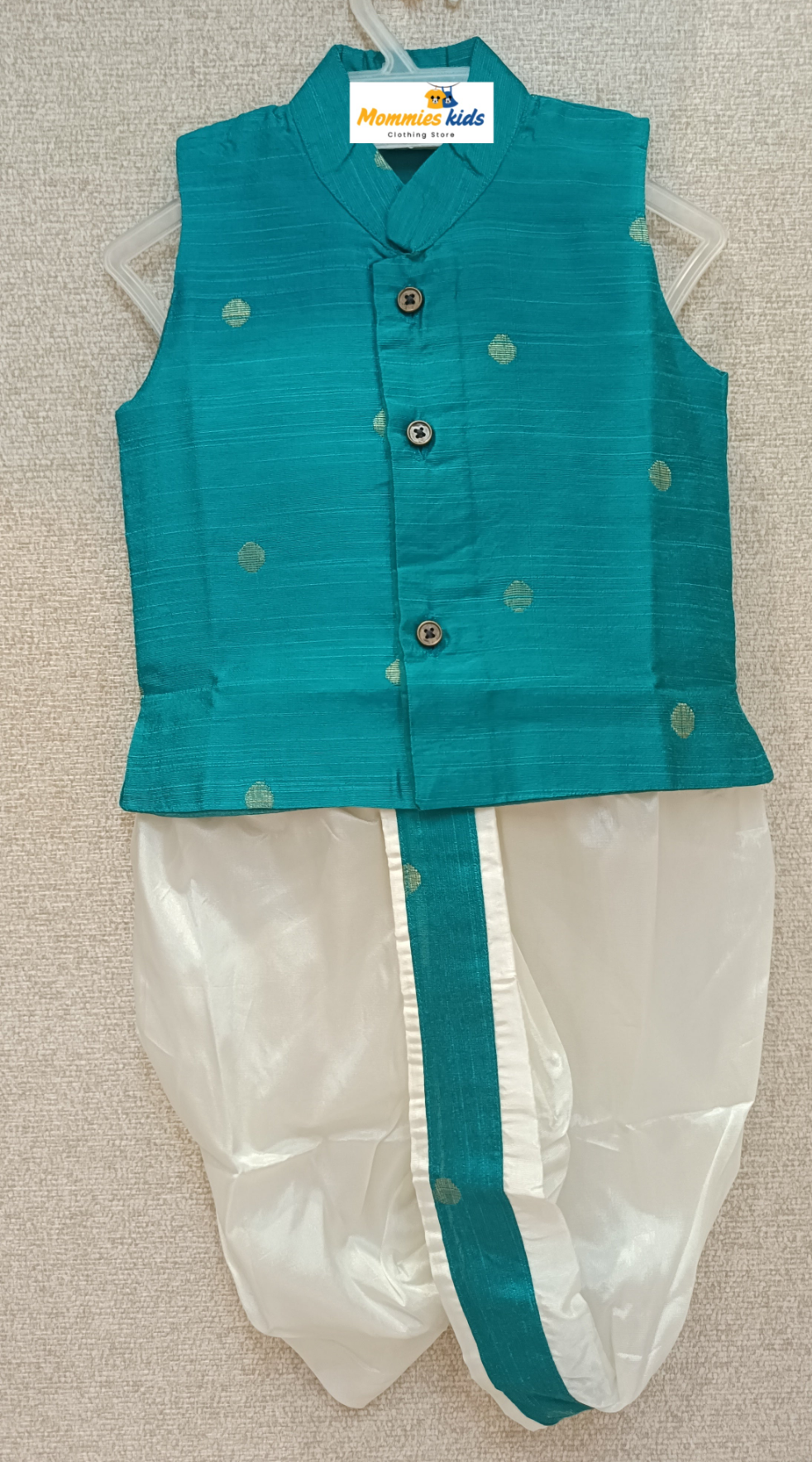 Infants green teal silk Dhoti Set